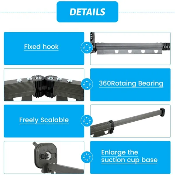 Den halkfria koppen med damm för att försvaga viskositeten, du kan rengöra den med vatten, viskositeten återställs efter torkning. Den robusta tvätttorken är utrustad med 15 vindbeständiga upphängningshål, du behöver inte vara rädd för vinden.