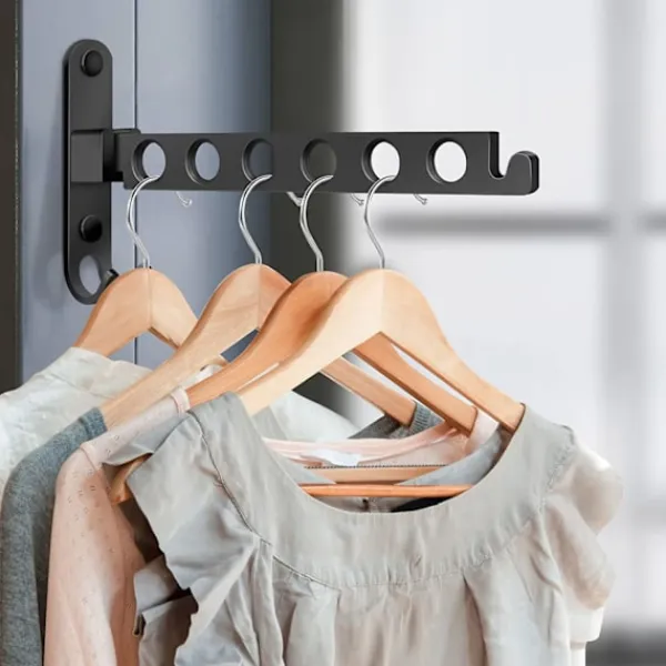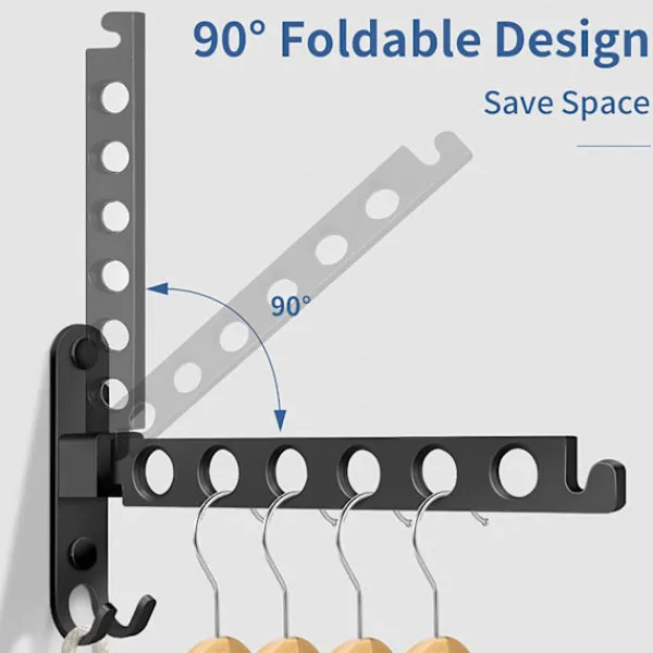 【Hopfällbar design】Vår hopfällbara väggmonterade klädhängare kan roteras 90 grader, roteras enkelt och utan ansträngning; vikas mot väggen när den inte används för att spara utrymme