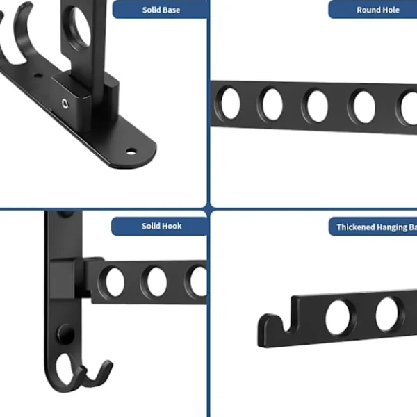 【Antifalldesign】Den hopfällbara vägggalgen har en vindtät rundhålsdesign för att förhindra att kläder och handdukar blåser bort av vinden när de hänger för att torka