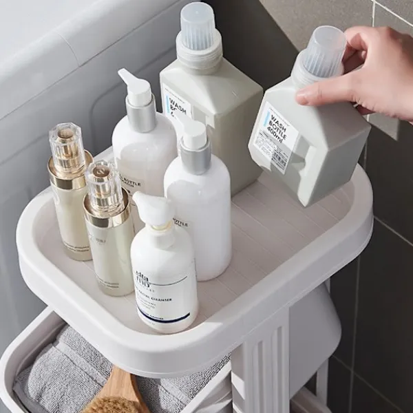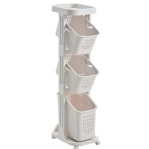 Denna vagn med tre tvättkorgar gör det enkelt att hålla ordning i tvättstugan. Med korgarna kan du sortera kläder direkt efter färg eller material, vilket sparar tid när det är dags för tvätt. Tack vare de ventilerande hålen får luften cirkulera i korgarna och håller tvätten fräschare längre. Vagnen är utrustad med en hylla på toppen där tvättmedel, sköljmedel eller andra tillbehör kan förvaras inom räckhåll. Med hjul i botten kan du smidigt flytta vagnen dit den behövs.