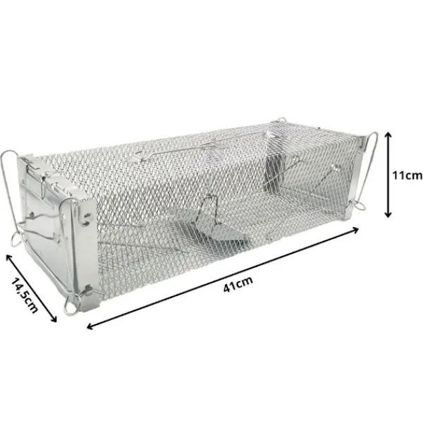 Den metalliska råttfällan är en effektiv och human lösning för att fånga råttor, möss och andra små skadedjur. Tillverkad av stark ståltråd, ger den hållbarhet och stabilitet under användning. Snäpplåset fungerar exakt och omedelbart, vilket garanterar effektivitet.
