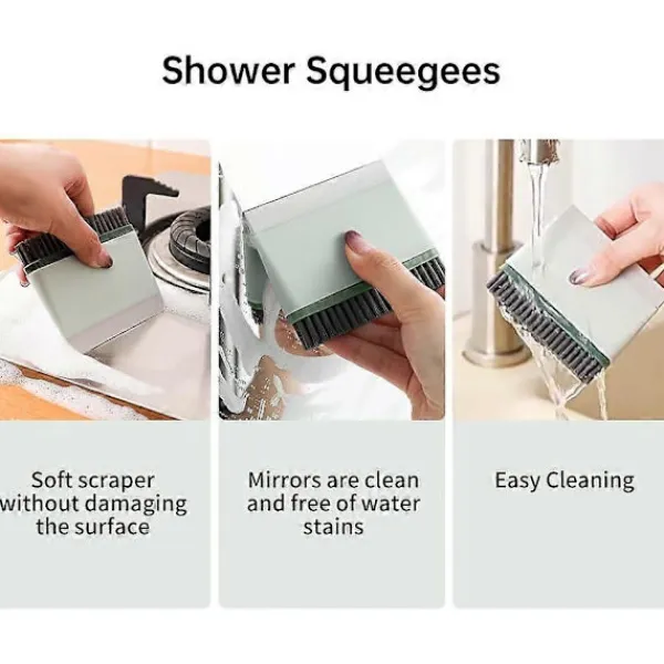 Dubbel funktionalitet: Duschskrapan med borste erbjuder bekvämligheten av både skrapa och borste i ett enda verktyg. Den kan effektivt ta bort vattenfläckar med skrapan och avlägsna smuts med borsten, vilket ger en komplett rengöringslösning.