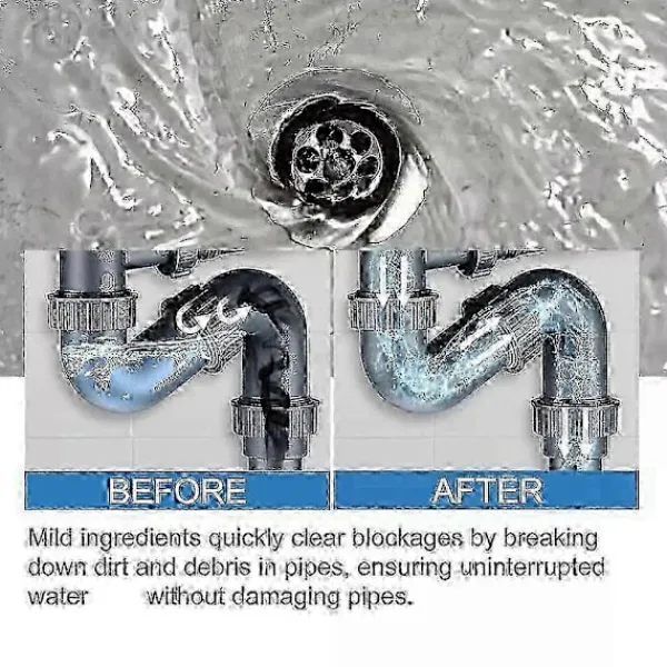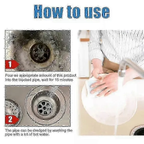 Kraftfull avloppsrengörare gör jobbet genom att enkelt lösa upp fett, hår, papper, tvålrester, oljor och organiskt material. Den skadar inte dina avlopp, rör eller septiska system, eftersom den endast är tillverkad av icke-korrosiva och icke-frätande material. Den löser upp fetter, oljor, ludd, papper, hår och annat organiskt material som orsakar stopp i avloppet. Med hjälp av en högdensitetsformula fäster våra produkter på väggarna i dina rör och ändrar pH-nivån för att snabbt lösa upp hindret. FUNKTIONER: Löser enkelt upp fett, hår, oljor, tvålrester och pappersprodukter Perfekt att använda på rör, toaletter, handfat, badkar och i andra huvudavloppsledningar Tillverkad av en icke-korrosiv formula som är säker för septiska system Använder sin höga densitet för att fästa vid rör och lösa upp avloppshinder Icke-korrosiv, icke-frätande och luktfri formula Paketet innehåller: 1/2/3 x Super Clog Remover Obs: Denna produkt fortsätter att verka och har en effektiv tid, om du behöver rensa blockeringen omedelbart, efter att ha köpt konsekvenserna!!! Användningsprocedur: 1. Häll i en sked pulver. 2. Pulvret kommer omedelbart att skumma, blötlägg det i 30 minuter. 3. Skölj efter 30 minuter.
