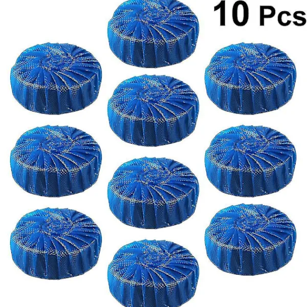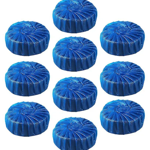 Beskrivning_x005fDen kan rengöra tanken, kanten, innerväggen, vattenröret och andra delar av toalettstolen noggrant och göra din toalettstol ren och ljus, och den är effektiv för att döda bakterier och mikrober i toaletten och avloppsröret, vilket förhindrar att bakterier från toaletten och toalettavloppet smittar växelvis._x005fFunktioner_x005f- Färg: Blå._x005f- Material: Mikrobiellt deodorantmedel._x005f- Storlek: Apprf_x005: 4,5 x 4,5 x 1,7 cm._x005f- Effektiv för att döda bakterier och mikrober i toaletten och avloppsröret, vilket förhindrar att bakterier från toaletten och toalettavloppet smittar växelvis._x005f- Effektiv för luktborttagning, renar luften i toaletten._x005f- Användning: bara trasiga påsar, ta ut 1 rengöringsmedel, sätt in den bortre änden av tanken från vattenutloppet. Riv inte sönder den vattenlösliga skyddsfilmen. Packlista: 10 x Rengöringsverktyg