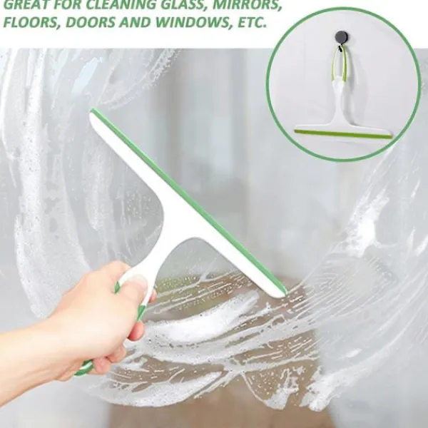 Hot 3-i-1 Spray-Skrapa Borste Vattenspray Fönsterrengörare Glasskrapa Torkare Mikrofiberdukset Grön