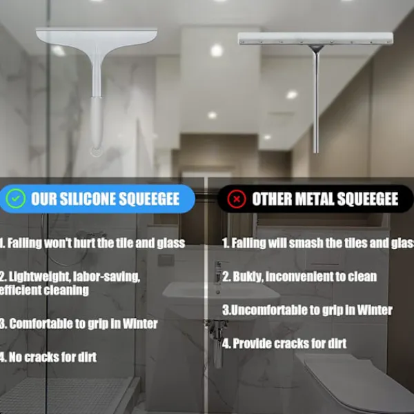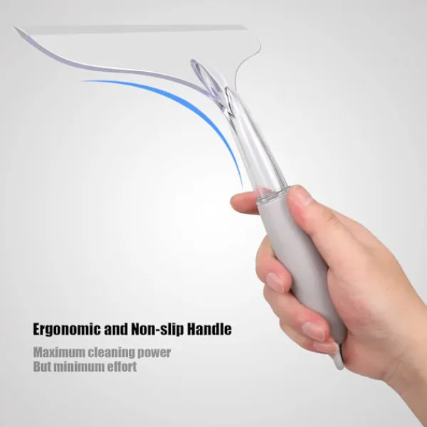 Bra grepp: Den strimfria handhållna borste rengöringen levereras med ett ergonomiskt mjukt handtag som inte orsakar handkramper vid användning, och dess lätta design hjälper till att förhindra att dina armar blir trötta för snabbt. Med exakta kanter och ett bekvämt grepp rengör designen effektivt droppar. Duschraklen glider inte ur handen även när den är våt.