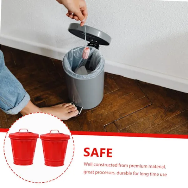 Liten soptunna i metall– Galvaniserad hink med lock, galvaniserad soptunna med lock, mini papperskorg, liten metallhink med lock, mini bordssoptunna, mini metall soptunna, blomkruka, pennhållare.