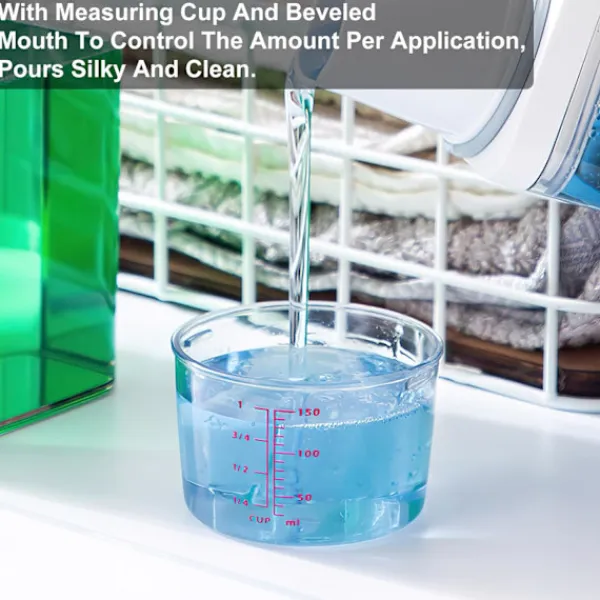 【Med mätkopp】Tvättmedelsbehållare med mätkopp och avfasad mynning för att kontrollera mängden per användning, häller smidigt och rent.