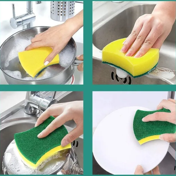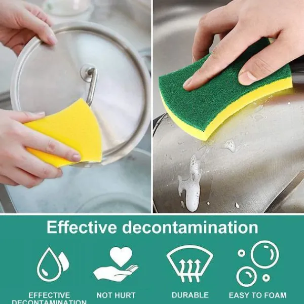 Den mjuka, repfria gula svampsidan med god vattenabsorption är lämplig för rengöring av lätt oljig disk, snabb rengöring utan att repa.