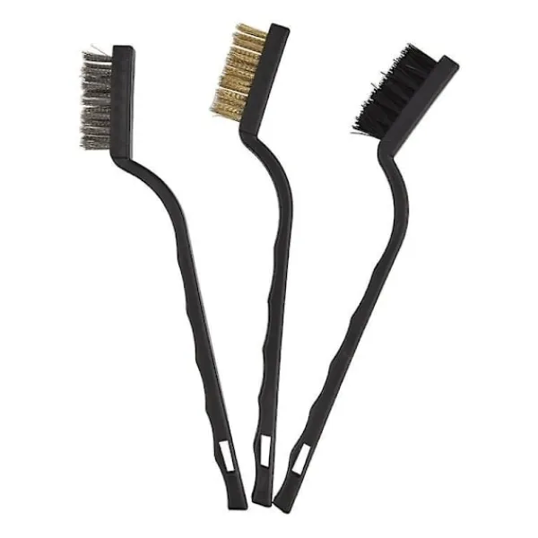 En uppsättning med 3 metallrengöringsborstar för olika typer av ytor, löser alla rengöringsproblem. Borstarnas handtag är tillverkade av högkvalitativ plast och de tre borsthuvudena är tillverkade av mässing, rostfritt stål och nylon. Det lilla hålet i änden av handtaget är praktiskt för förvaring och sparar mer skrivbordsutrymme.
