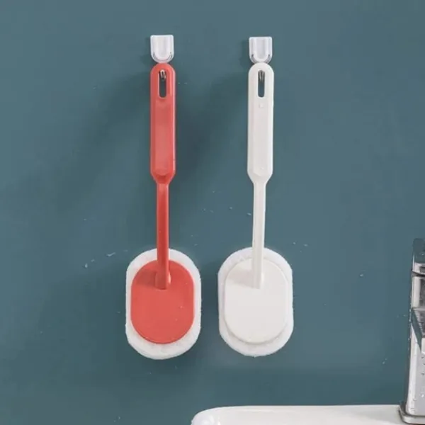 【Rengör snabbt】Efter att ha använt denna svampbadrumsrengöringsborste kan du skölja den direkt under vatten och sedan hänga upp den, rengöringen av borsten är mycket enkel.
