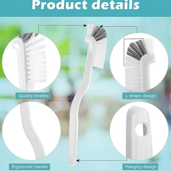 90 graders vinkelborste: denna köksborste är designad med en 90 graders vinkel och små borst för att enkelt nå trånga utrymmen, vilket effektivt hjälper dig att rengöra områden som är svåra att rengöra eller envis smuts. Hållbar diskborste: denna diskborste är tillverkad av högkvalitativ plastresinhandtag och PET-fiberborst, vilket har god böjningsbeständighet, behåller formen på borsthuvudet, hållbar och tvättbar för en lång livslängd. Bekvämt handtag: varje köksrengöringsborste har ett bågformat handtag och avrundade kanter, så du kommer att känna dig väldigt bekväm när du håller detta rengöringsborsthandtag, vilket ger mycket bekvämlighet till ditt liv när du rengör. Brett användningsområde: du kan också använda denna skrubbborste för att rengöra dina fönsterfåror, persienner, bilventiler, skjutdörrar, duschdörrspår, gasspis, handfat, kran, toalettbrytare, badkar och så vidare, rengör bra och torkar snabbt. Paketet innehåller: du kommer att få 5 stycken handfatsrengöringsborstar, varje borste har ett upphängningshål som är mycket bekvämt för dig att förvara, handtaget är lätt att hålla och glider inte runt, det kommer att vara en bra hjälpare i ditt kök.