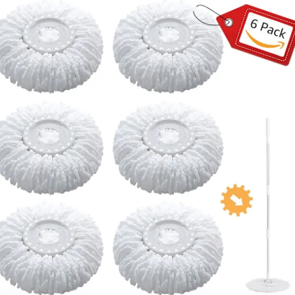 6-PACK MOPPHUVUDEN FÖR 360° ROTERANDE SNURRMOPP: Paketet innehåller 6 st ersättningsmopphuvuden för EasyWring snurrmop; Varje mopphuvud väger 140 g/0,3 lb, tyngre än de flesta snurrmophuvuden på marknaden, med tjockare och fluffigare fiberremsor