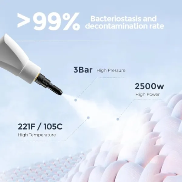 Ångrengörare, Uppgraderad 2500W Handhållen Ångrengörare, Högtryckstvätt för Rengöring, Bärbar Ångrengörare för Hemmet med 3 Borstar, Högtemperatur Ångrengörare för Kök, Badrum [Vit] [2500W Kraftfull Ångrengörare] Högtemperatur Trycksatt ångrengörare för rengöring använder en 2500W effekt, kan avge 221℉/105℃ hög temperatur och 3Bar högtrycksånga på 15 sekunder, vilket är lätt att smälta och ta bort envis fet smuts, smuts, damm