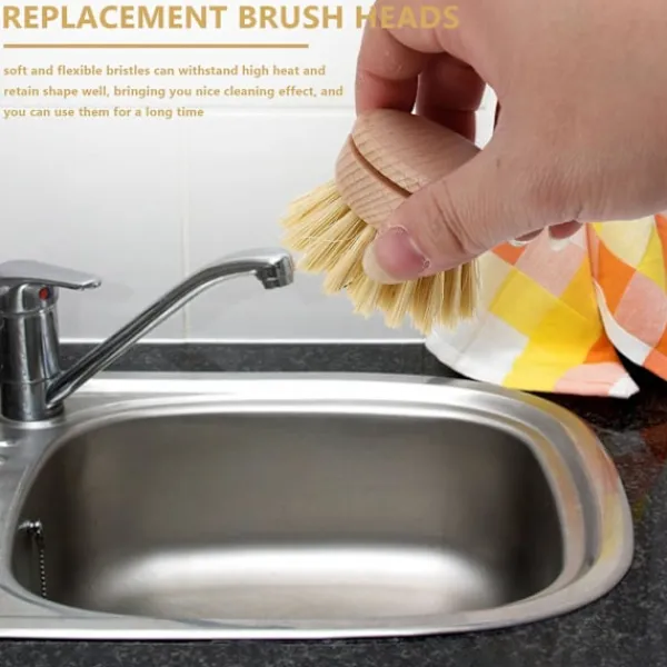 Funktionell och användbar: dessa påfyllningsbara köksborstar av trä kan skrubba disk, glas, grytor, stekpannor och så vidare försiktigt och effektivt, enkel installationsfunktion, de hjälper dig att rengöra de tuffa köksröran, praktiska assistenter för din dagliga hushållsstädning