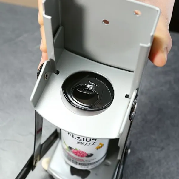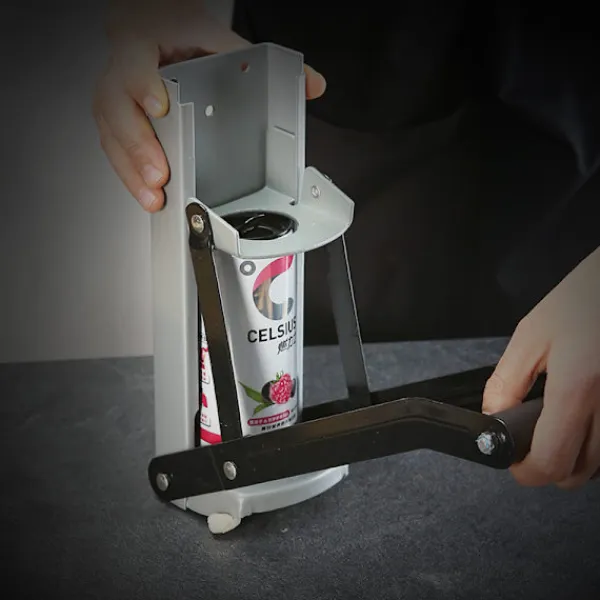 Det ergonomiska handtaget erbjuder ett bekvämt grepp, vilket minimerar belastningen på handen vid upprepad användning, medan den breda krosskammaren rymmer de flesta vanliga dryckesburkar effektivt.