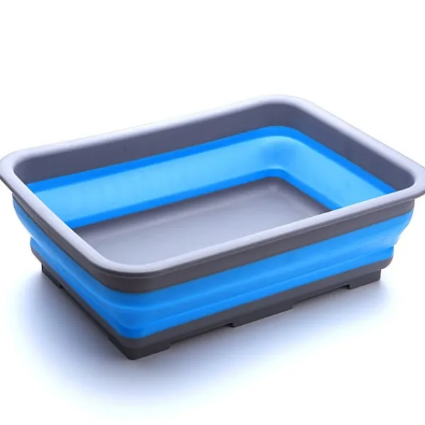 Denna platsbesparande hopfällbara diskbalja har en fyllningskapacitet på 10 liter