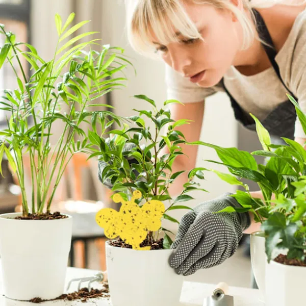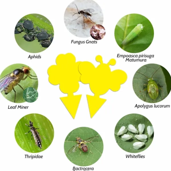 Effektiv klibbig flugfälla: Insektfälla i lysande gul färg som lockar till sig flygande insekter där de fastnar på limmet. Sätt i den drabbade krukan eller ha i fruktskålen för att bli av med bananflugor.