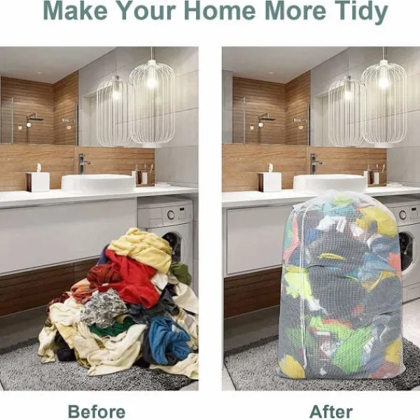 Stor tvättsäck: Med sin storlek på 60 x 90 cm erbjuder denna tvättsäck extra utrymme för massor av kläder och är även perfekt för större föremål som höst- och vinterjackor. Med en tvättsäck förhindrar du att dina kläder slits ut i onödan när du tvättar i maskinen.