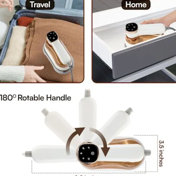 Lättviktig och resevänlig design – Kompakt och lätt för enkel bärbarhet. Perfekt för resor eller hemmabruk, den får plats i bagaget eller garderoben, vilket gör den perfekt för snabba uppfräschningar på resande fot eller effektiv daglig strykning hemma.