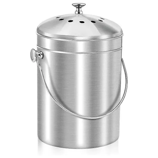 Robust och Elegant Konstruktion i Rostfritt Stål: Tillverkad av premium, rostfritt stål, erbjuder kompostbehållaren hållbarhet samtidigt som den kompletterar din köksinredning. Dess charmiga design integreras sömlöst på vilken bänkskiva som helst och ger funktionalitet och stil.