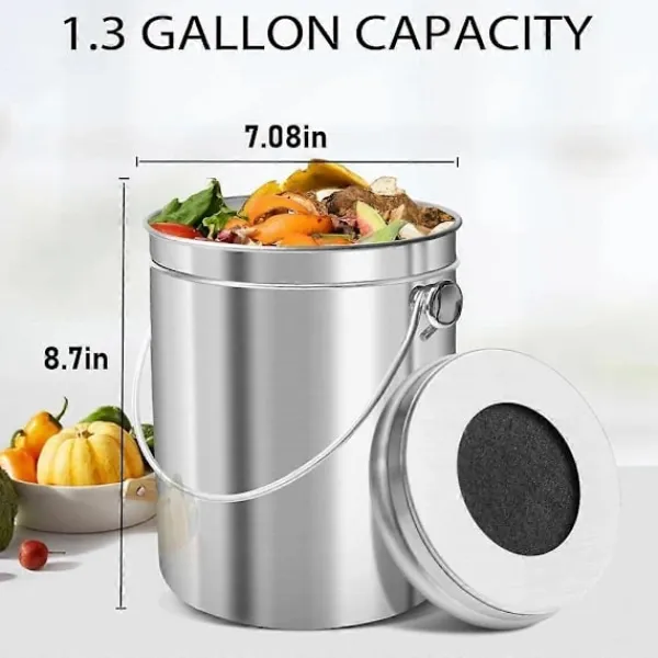 Bekväm och Lätt att Underhålla: Denna komposthink för inomhusbruk kan lagra flera dagars organiskt avfall som grönsaker, frukt och kaffesump, vilket minskar dina resor till utomhuskomposteringsområden. Den är också lätt att rengöra med bara varmt vatten, undvik starka rengöringsmedel för att bibehålla sitt ursprungliga skick.