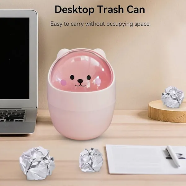 SÖT PLASTPAPPERSKORG: Vår miniavfallskorg med söt tecknad djurdesign, i form av en katt eller björn, denna soptunna för fåfängebord är utmärkt att sätta på badrumstoalettbänken, köksbänken, bilar och många andra skrivbordsplatser.