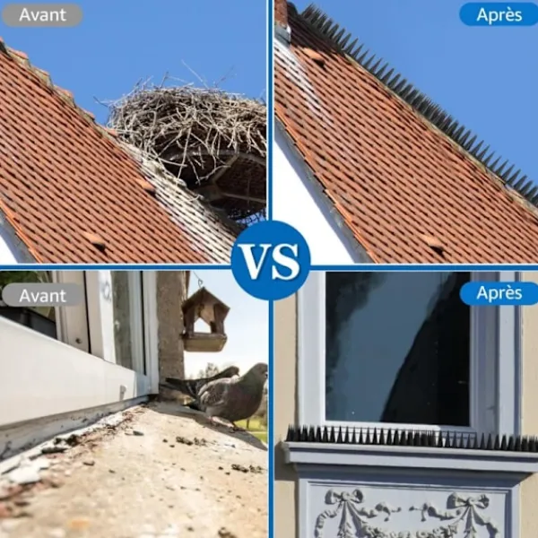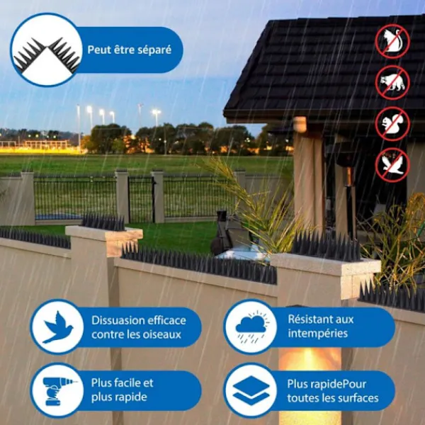 Anti-duvor för balkonger: 3-radig pigg mot duvor ger effektivt skydd mot fåglar installerade på taket, balkonger, hängrännor eller balustrader. Kan också användas som kattskrämma för att skrämma din katt och hindra den från att korsa balkongen.