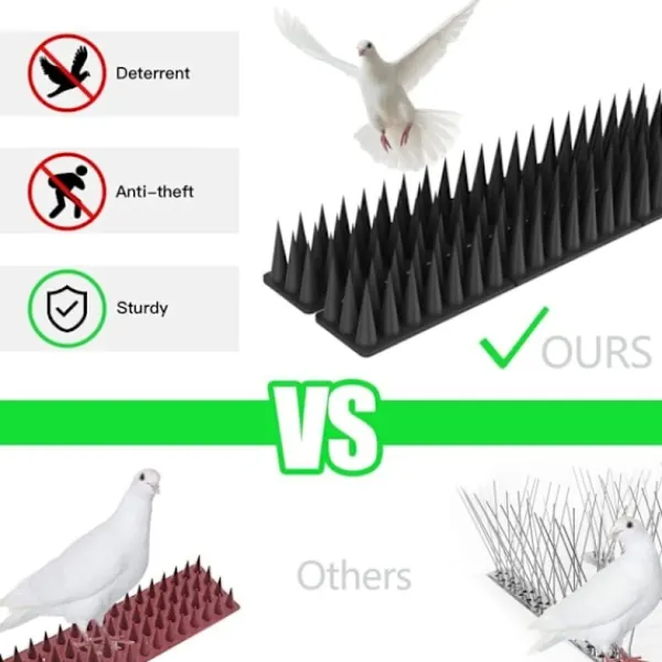 Pigg mot duvor: Jämfört med andra plastpiggar mot duvor, har våra piggar mot duvor små taggar mellan de långa taggarna, vilket effektivt hindrar fåglar som duvor och sparvar från att landa på balkar, markiser eller fönster och bygga bo och lämna efter sig äckliga fåglar!