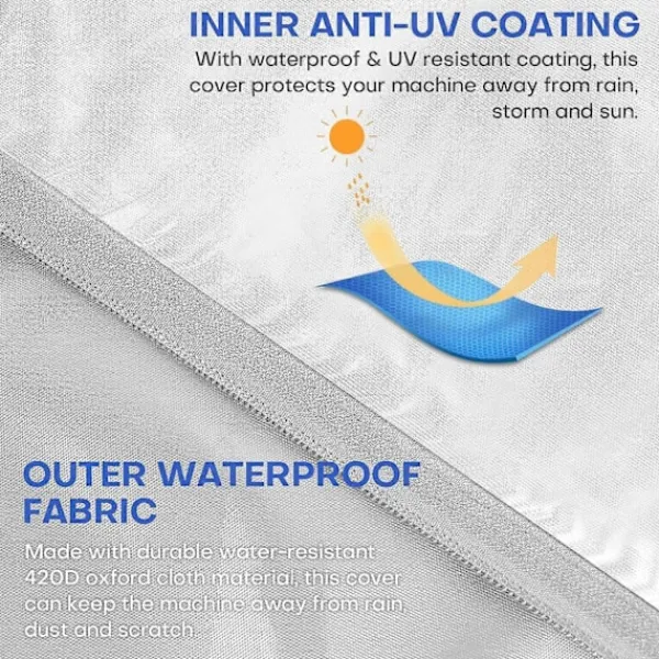 Tillverkat av slitstarkt, vattentätt 210D Oxford-tyg med en vattentät och UV-beständig beläggning, skyddar detta överdrag dina möbler från väder och vind, såsom regn, stormar, sol och smuts.