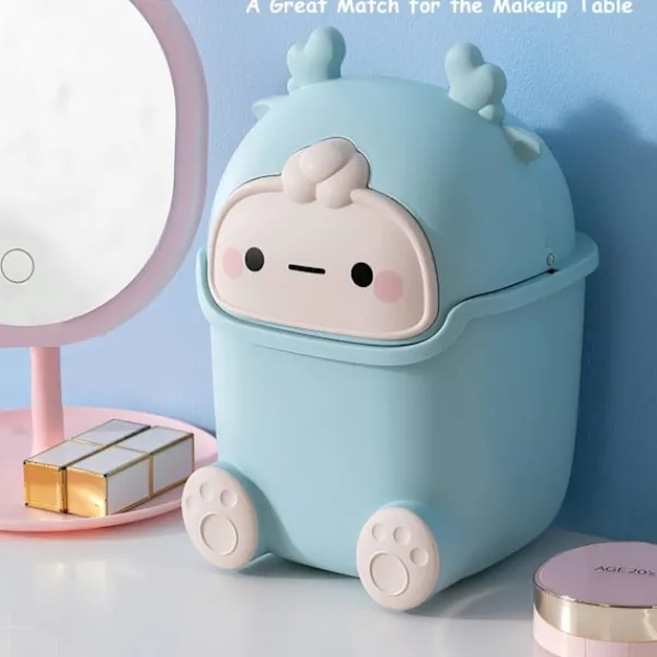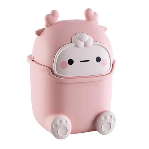 SÖT FORM – Söt tecknad djursform, när du öppnar soptunnan ser det ut som att djuret öppnade munnen för att äta, supergullig, förseglad och luktfri, förhindrar att soporna spills ut, soporna exponeras inte, täck locket för att förhindra att lukten sprids, så att du bättre kan njuta av bekvämligheten med denna soptunna.