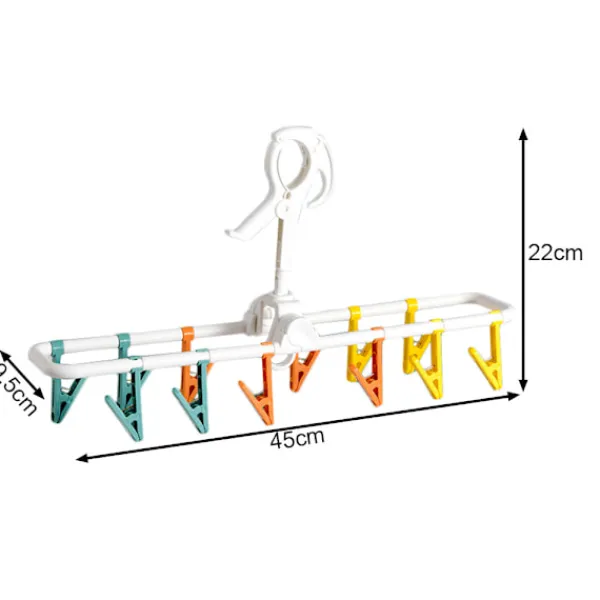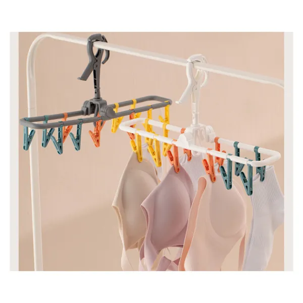 Den hängande underklädtorkaren är en praktisk och funktionell lösning för både hemmet och resor. Dess hopfällbara design möjliggör enkel förvaring och transport, vilket gör den till det perfekta valet för dem som uppskattar kompakta lösningar. Utrustad med 12 avtagbara krokar gör den det möjligt att bekvämt torka en mängd olika plagg som underkläder, strumpor eller små tillbehör. Tack vare möjligheten att fästa en andra torkare erbjuder produkten ännu mer utrymme för tvätt, anpassat efter användarens individuella behov.