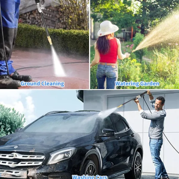 【Bred tillämpning】Hydrojet rengöringsstav för rengöring av smuts på biltvätt, husrengöring, bevattning av trädgård, jordbruksbevattning, fönsterputsning, husbilar, båtar. Den kan användas i olika scenarier som fordonsrengöring, golvrengöring, rörrengöring, jordbruksbevattning, bevattning av växter etc.
