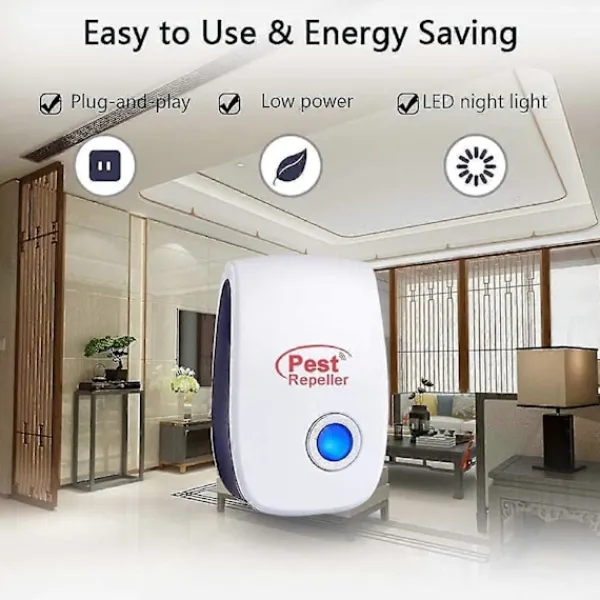 Lätt att använda – avvisaren är enkel att använda. Allt du behöver göra är att ansluta ultraljudsbaserade insektavvisaren till ett eluttag och den börjar avvisa insekter när det blå nattljuset tänds. Det rekommenderas att installera denna insektavvisare mellan 76 – 127 cm från marken (för flygande skadedjur) och 25 – 76 cm från marken (för krypande skadedjur).
