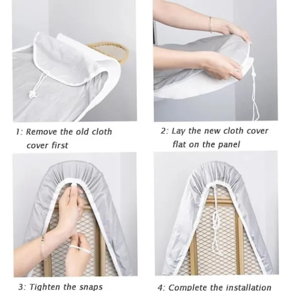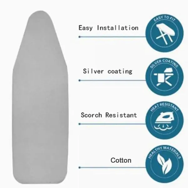 Lätt att installera: Placera bara bomullsöverdraget på strykjärnsbrädan och dra åt snöret. Repdesignen säkerställer säkerhet och halkfrihet, och strykjärnsbrädaöverdraget är fixerat till strykjärnsbrädan i standardstorlek. Oroa dig inte för hala lock på strykjärnsbrädan.