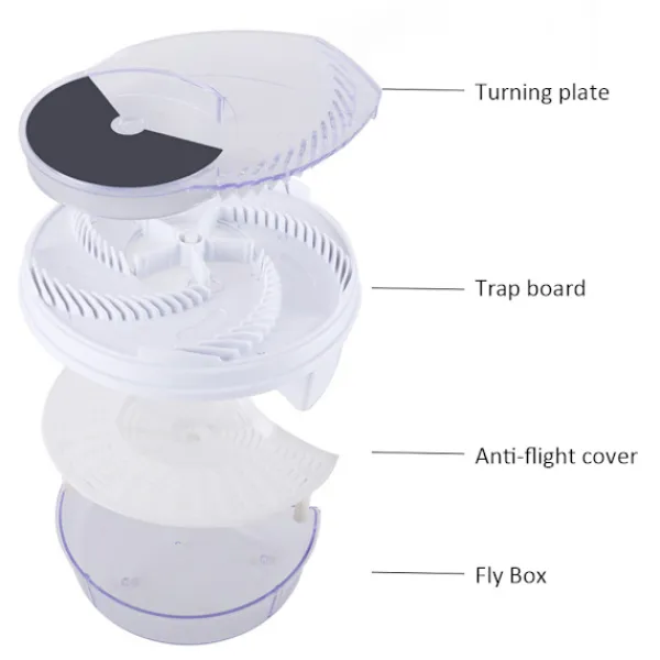 3. Flugor lockas till betet och överförs till lådan genom att rotera plattan.