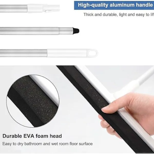 Lätt skumgolvskrapa: Golvskrapan är gjord av lättviktsmaterial, mindre än 0,4 kg. Lättviktsdesign hjälper dig att rengöra vatten och damm på höga platser. Oavsett om du rengör badrumsväggar eller glas på höga platser är det en barnlek.