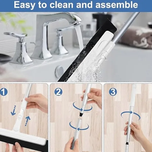Lätt att montera och rengöra: Golvskrapan är lätt att montera, du behöver bara montera anslutningsstången och skrapshuvudet och sedan montera handtaget enligt önskad storlek. Lätt att förvara och rengöra, skölj skrapan med rent vatten för att hålla den ren.