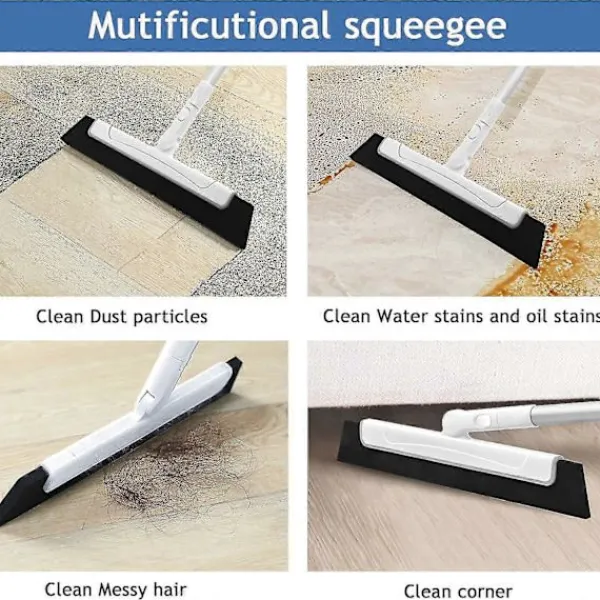 Roterande skrapshuvud: Anslutningsleden är 180° roterbar, perfekt för rengöring av alla hörn och kanter, du kan enkelt rengöra vissa fördjupningar och hörn som är lätta att ignorera, rengöra golvytor utan att repa, snabbt ta bort stora ytor med vatten i våtrum.