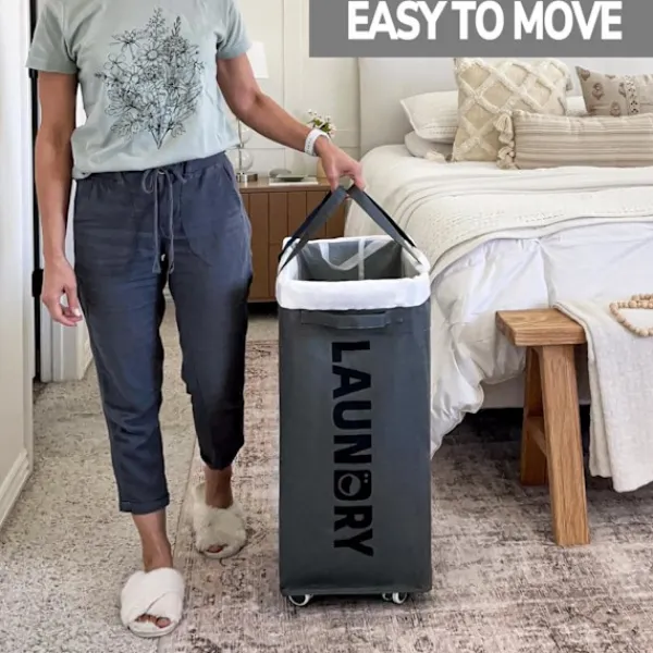 Bekväm transport. Med en rullande design och ett robust handtag är det enkelt att transportera kläder från ditt sovrum till tvättstugan eller badrummet. Fyra hjul och två bromsar säkerställer balans och säkerhet för hemmabruk.