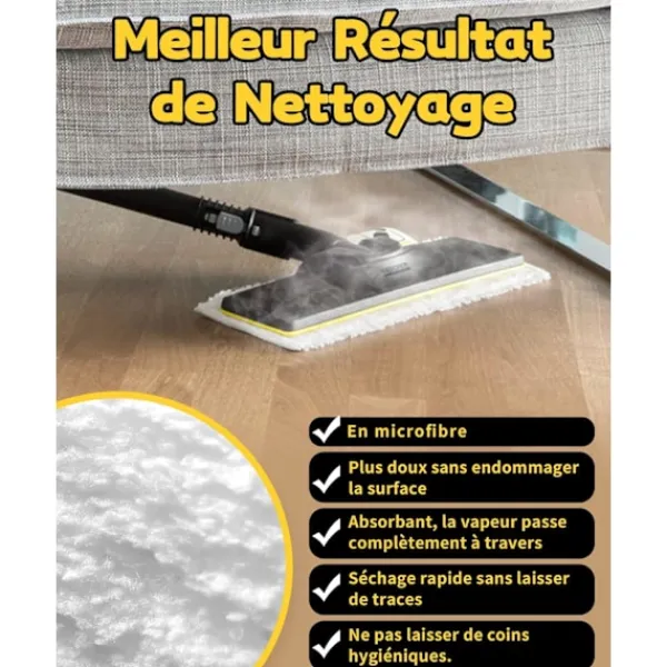 Högkvalitativa ersättningsdukar: Ångtvättskyddet är tillverkat av mikrofiber, som snabbt kan ta bort fläckar, är mjukt vid beröring och skadar inte golvet, är mycket absorberande, ånga kan tränga in och torka snabbt utan att lämna några rester.
